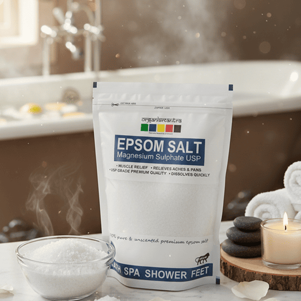 Epsom Salt also known as Magnesium Sulfate, is used as a healing agent and pain reliever. Today, it’s most often added to hot baths and foot soaks to reduce body pain and muscle spasm.