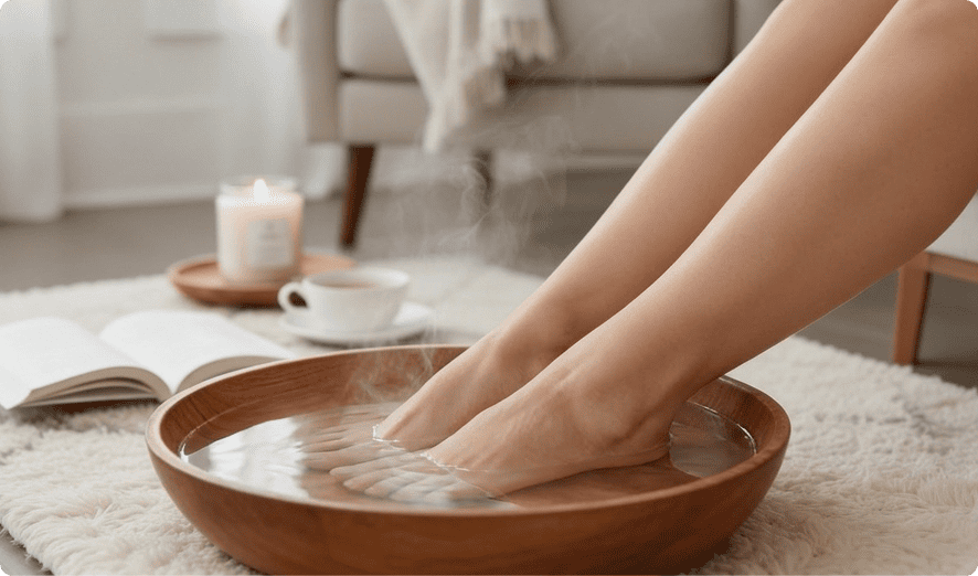 - For an aromatherapy boost, consider adding a few drops of diluted lavender, peppermint, or eucalyptus essential oil to your foot bath.