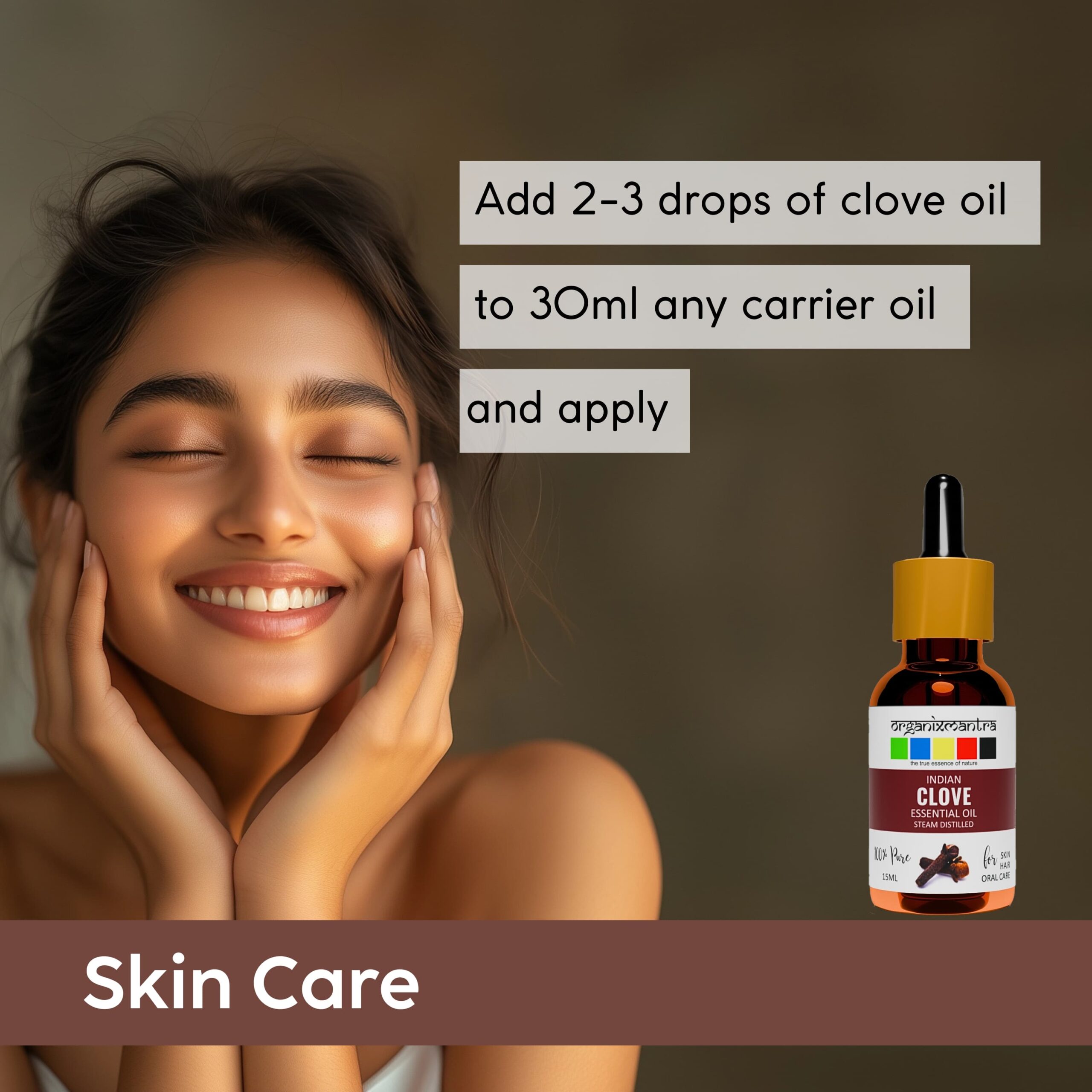 Discover the potent benefits of Organix Mantra Clove Essential Oil, a pure and natural solution crafted to elevate your skincare, haircare, and overall wellness. Sourced from the finest clove buds, this essential oil is known for its rich, warm aroma and powerful properties that have been cherished for centuries. With a high concentration of eugenol, our clove essential oil is a must-have in your wellness routine, providing natural support for glowing skin, healthy hair, and a revitalized mind and body.