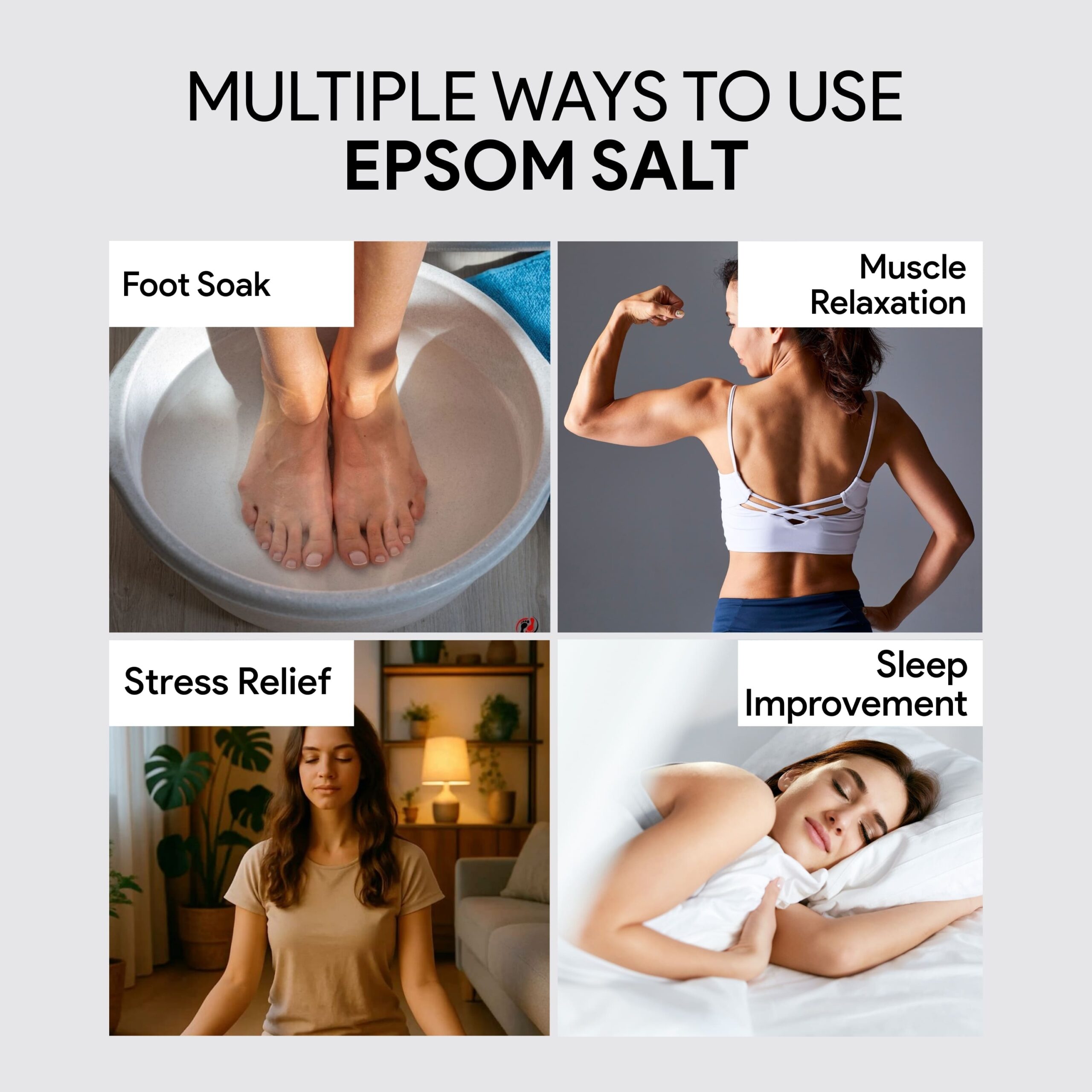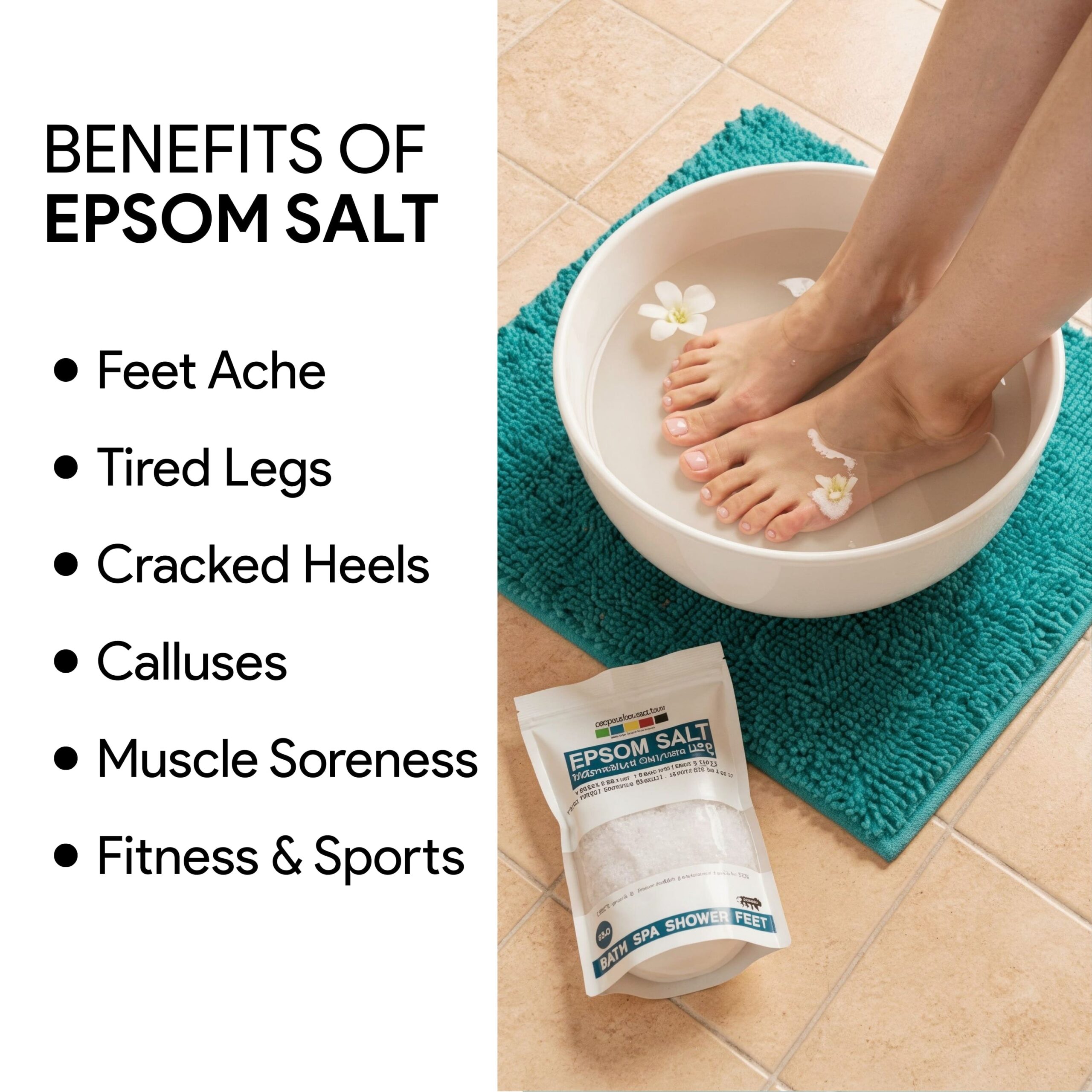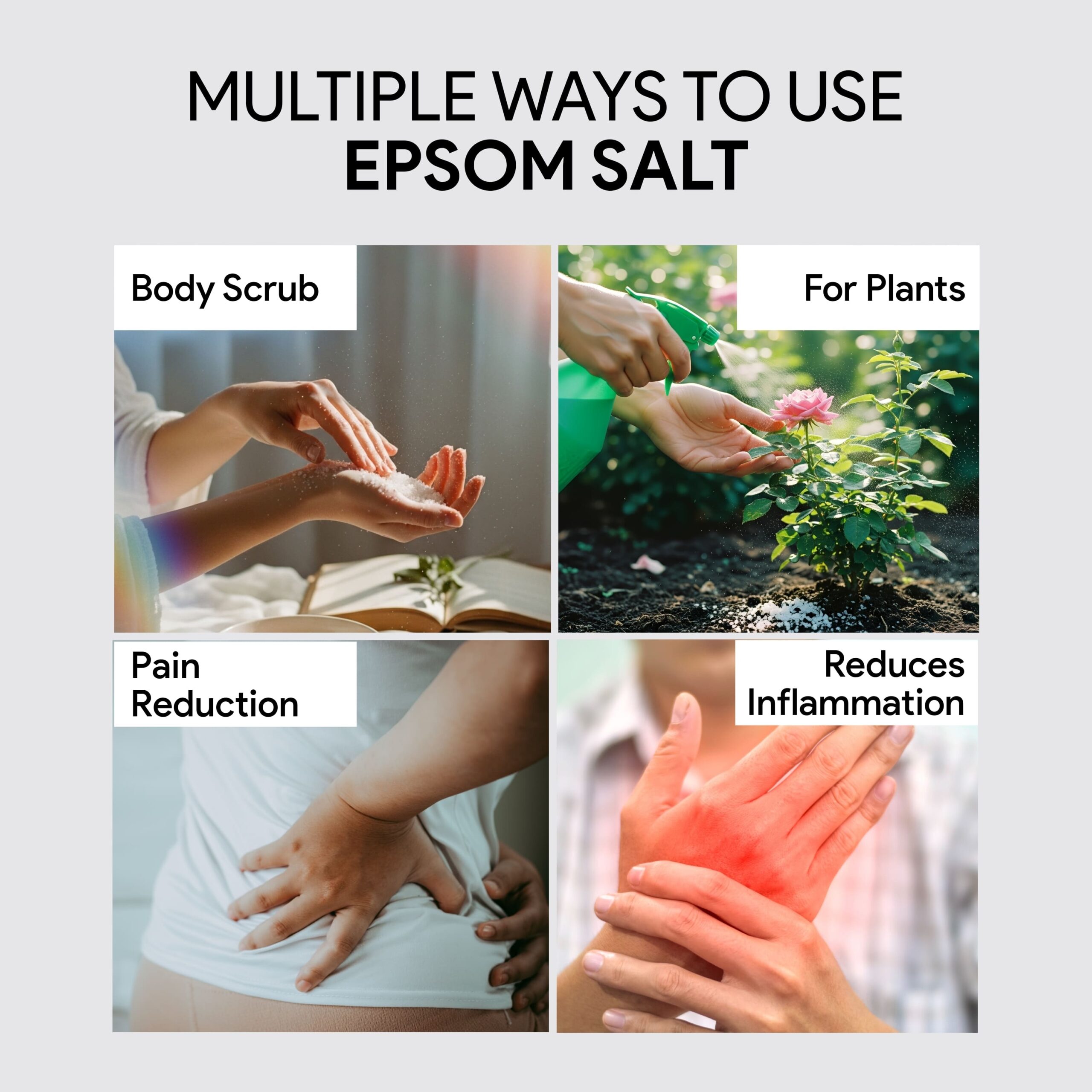 I use this epsom salt every day for foot baths and it helps with pain and absorbing good amount of magnesium to my body helps in many bodily functions and it helps soothes severe infections too.great quality and affordable price and multiple uses and benefits:)