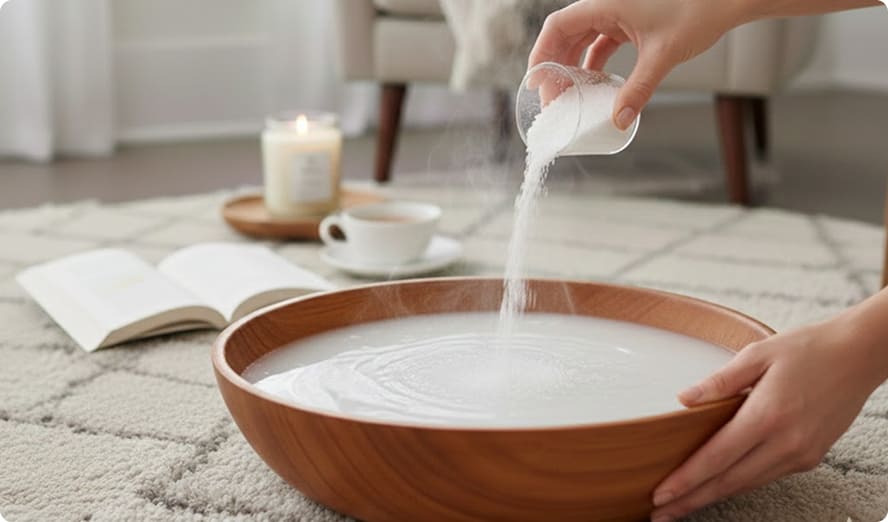- For an aromatherapy boost, consider adding a few drops of diluted lavender, peppermint, or eucalyptus essential oil to your foot bath.