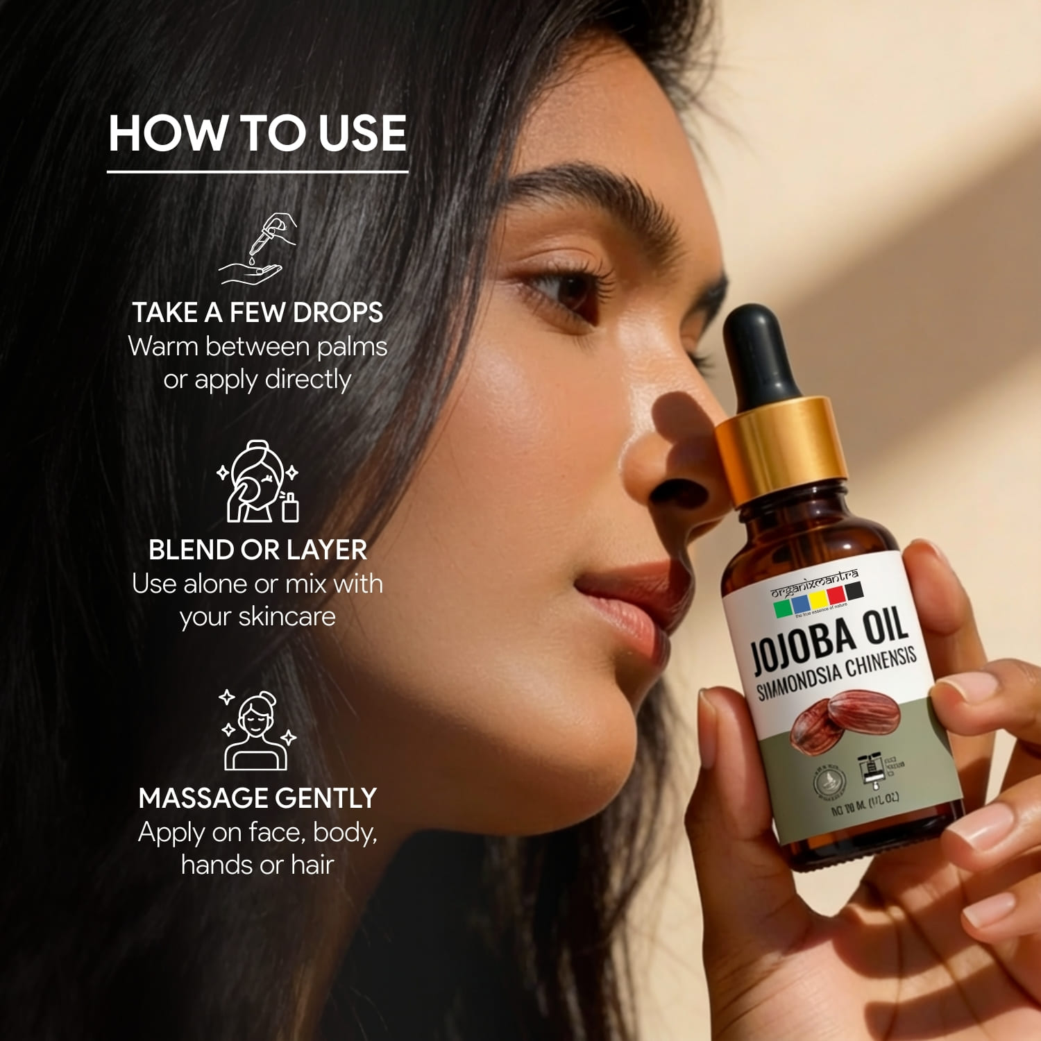 - Hair Care: Add a few drops to your shampoo and massage it into your damp hair. Aids in smoothening frizz.