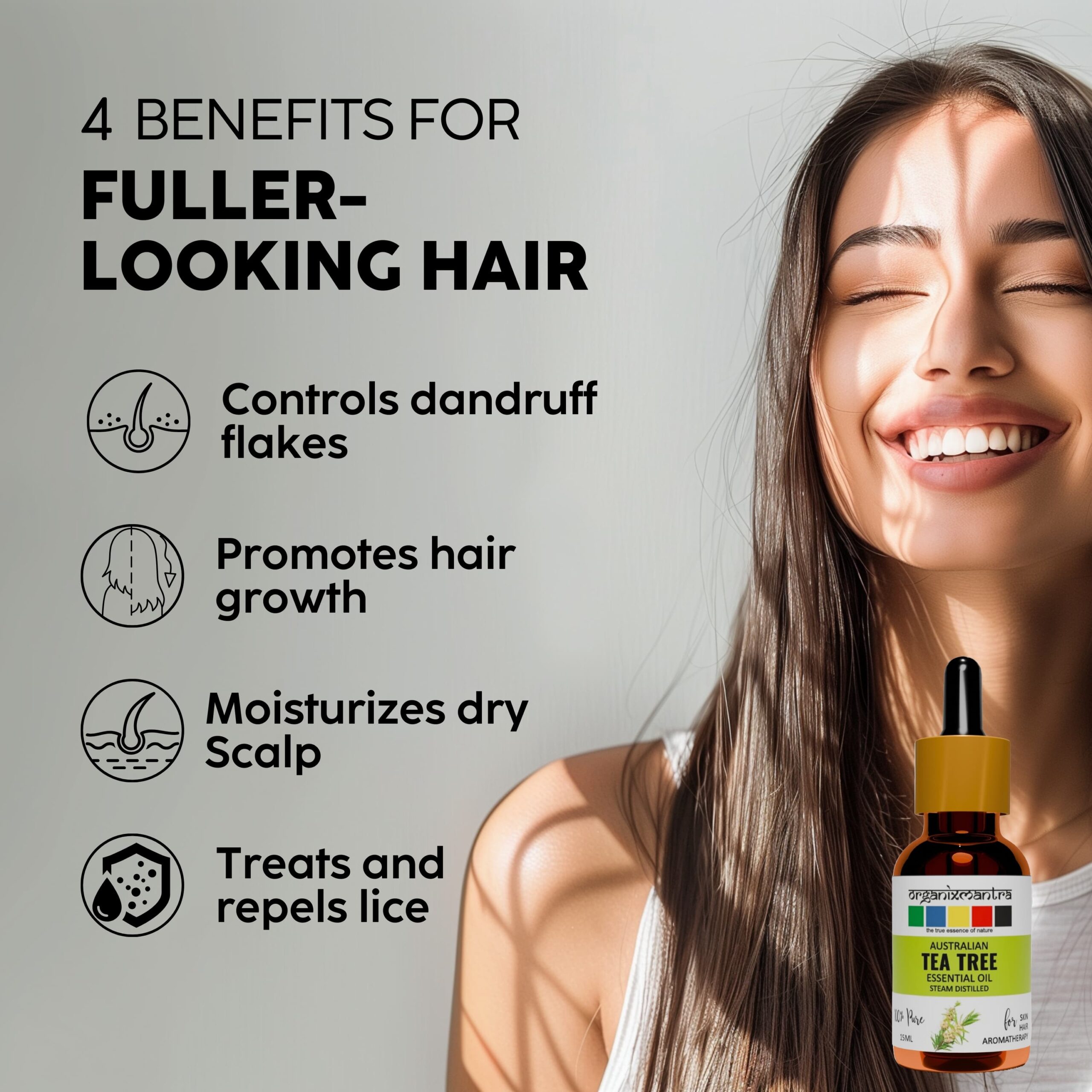 - HAIR CARE: Regularly massaging your scalp with Tea Tree Oil (TTO) mixed with coconut oil is known to enhance hair growth while helping get rid of dandruff.
